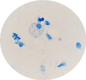 Figure 3. The Ziehl-Neelsen stain of pus drained from the paracostal abscess reported acid-fast bacilli