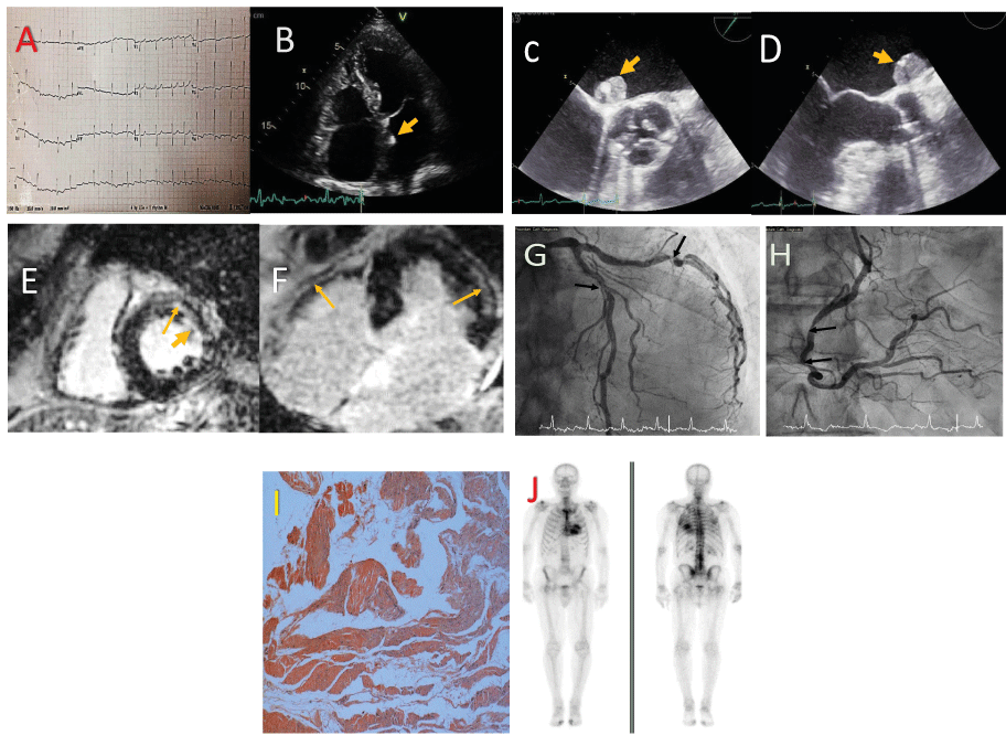 cardiac amyloidosis, aortic stenosis, myxoma, cardiac imaging, coronary artery disease, case report