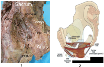 PFM dysfunction can be classified as pelvic pain syndromes, voiding/defecatory problems (urinary incontinence, anal/FI, retention, urgency), constipation, POP, and sexual dysfunction. The PFM are the body's only transverse load-bearing muscle group, and they support the abdominal and pelvic organs. The dual purpose of providing stability in the lumbo-pelvic area. PFM has been postulated to help regulate the lumbar spine by contributing to intra-abdominal pressure (and consequently fascial tension) and pelvic stability via strengthening the sacroiliac joints [7]. PFD is an umbrella term that refers to a wide range of clinical problems, including bowel and bladder incontinence, pelvic organ prolapse, sexual dysfunction, and chronic pain syndromes involving the pelvic tissues and musculature [8-10] Figure 1, Figure 2.