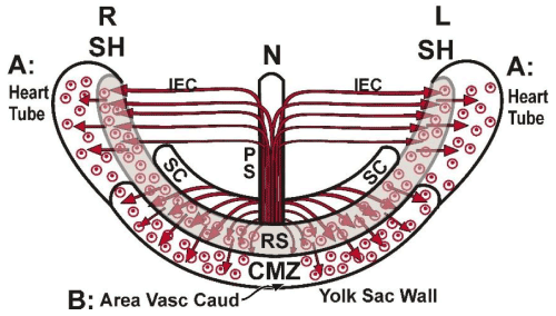 - Callebaut M, van Nueten E, Van Nassauw L, Hubens G (2013a) Earliest Anlagen of the area vasculosa and heart: Regional influences of “extraembryonic” (yolk rich) tissues. Trends Dev Biol 7: 1-13.