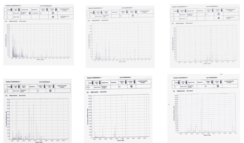 Matrix-assisted laser desorption ionization-time-of-flight mass spectrometry (MALDI-TOF MS) has emerged over the last few years as a novel tool for rapid and reliable identification of microorganisms by analysis of protein profiles from either disrupted cells or intact bacterial cells. The accurate identifications and reduced turnaround times and cost, are facilitating an appropriate management of the infectious diseases [9,15,16].